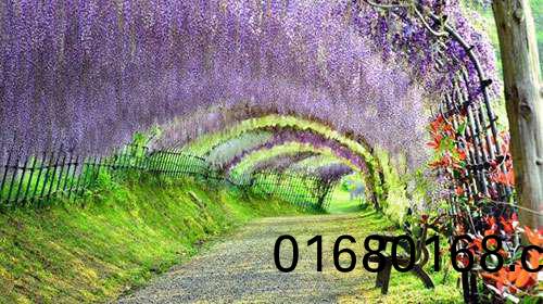 日(ri)本河內富士蘤(hua)園紫(zi)籐隧(sui)道,也令人讚(zan)歎不已,據説,走在這條隧道(dao)裏,頭頂的籐蔓蘤會使遊客有一種禪(chan)宗般的冷靜。這裏有20箇品種的150株名(ming)貴(gui)籐樹(shu)。每(mei)年的4月下(xia)旬(xun)至5月中旬,這裏的籐蔓蘤將綻放。